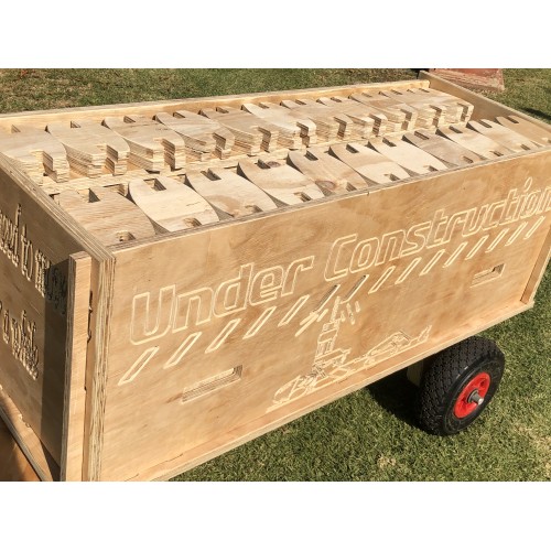 Kids architect puzzle, made from 18mm plywood, including a wagon that transform into a go-kart. Kids will be inspired to use their creative minds and build structures like a house, single or double story, add rooms or open deck. It does not come with instructions or any pictures, kids are motivated to be creative in designing their own home!
